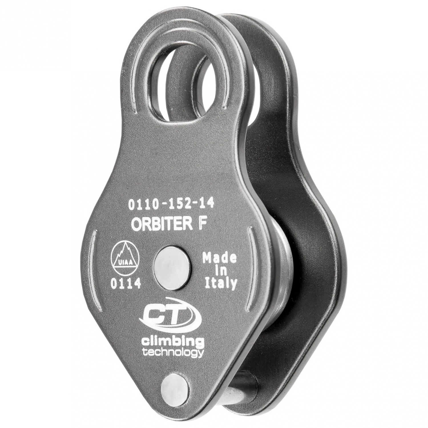 Ideal als Umlenkrolle geeignet – die Orbiter F von Climbing Technology. Das ‚F‘ im Produktnahmen steht für fix und beschreibt die fixen Seitenteile der Rolle. Durch den festen Verbindungssteg unter der Rolle ist das System besonders sicher, da das Seil auch beim Bruch der Rolle nicht aus dem Gerät rutschen kann.