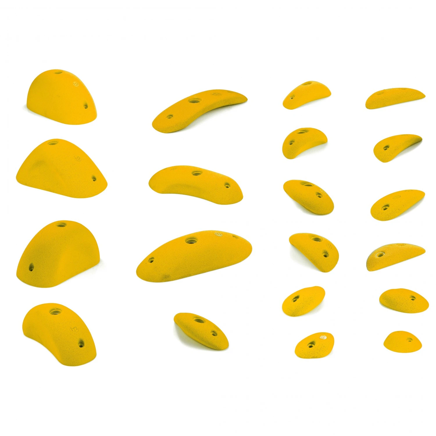 Das perfekte Griffset, um die Unterarme so richtig brennen zu lassen – das Extrem Boulder Set von blue pill! Die zwanzig Klettergriffe sind in ihrer Form optimal, um schwere Boulderrouten zu kreieren – von Jugs über Pinches bis hin zu kleinen Auflegern ist hier alles dabei. Das Polyestermaterial lässt sich einfach reinigen und sorgt für gute Griffigkeit, während die hohle Innenseite das Gewicht der Griffe reduziert. Zahlreiche Befestigungsmöglichkeiten für M10-, Senkkopf- oder Zylinderschrauben (nicht im Lieferumfang enthalten) bieten ein Plus an Festigkeit und Sicherheit.