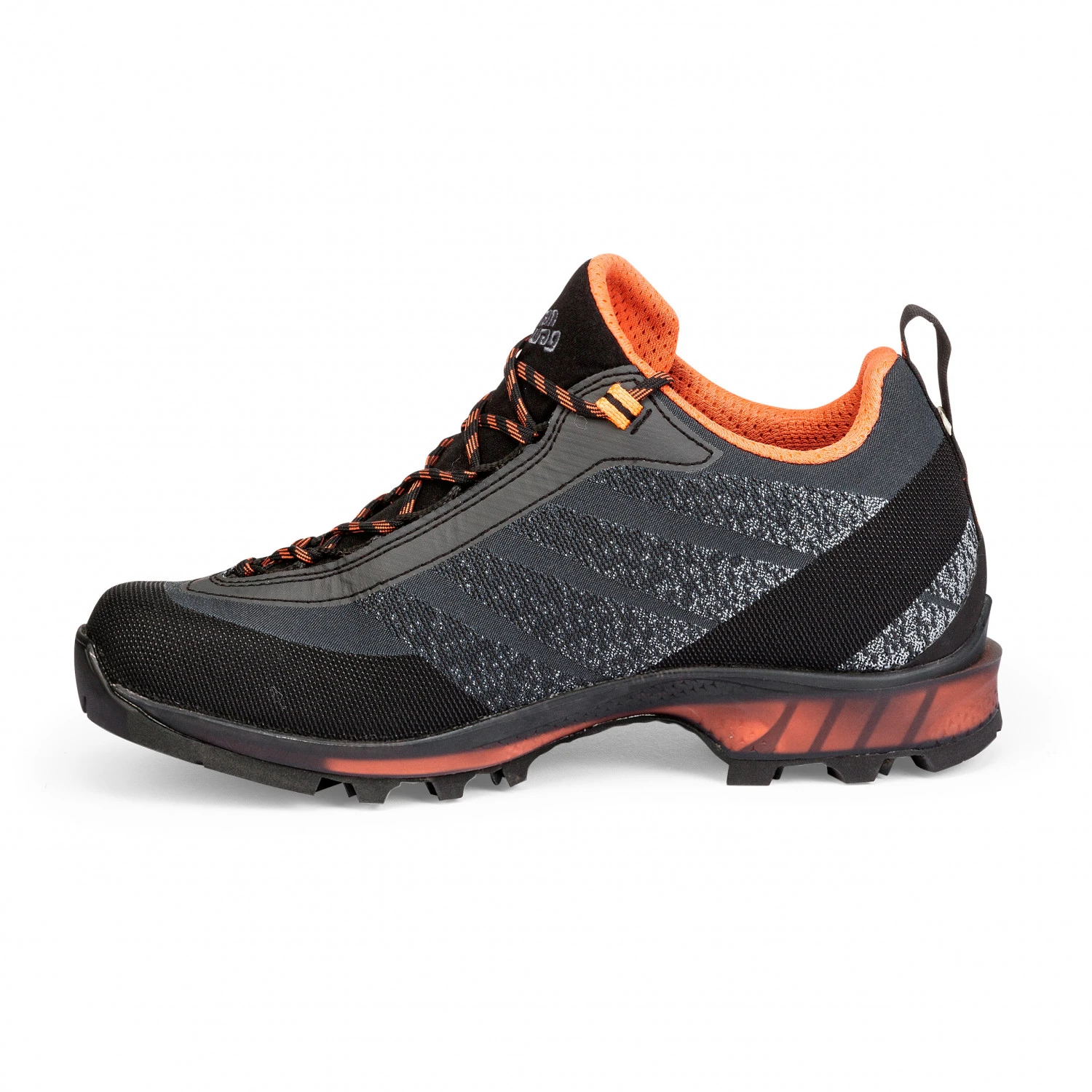 Ideal für Klettersteige und für den Zustieg: der Ferrata Light Low Lady GTY von Hanwag! Der leichte und dennoch sehr widerstandsfähige Halbschuh ist perfekt für Klettersteige und technisches Gelände. Die Oberkonstruktion des Schuhs ist nahtlos und nahezu aus unzerstörbarem Polyurethan-Garn gewebt. Die spezielle Laschenkonstruktion an der Zunge (Futura) wird der natürlichen Anatomie des Fußes besser gerecht und sorgt somit für einen hohen Tragekomfort. Als Sohle setzt Hanwag bei diesem Schuh auf die bewehrte Vibram Integral Light Laufsohle, die durch eine herausragenden Griffigkeit punktet. Da bleiben keine Wünsche mehr offen!