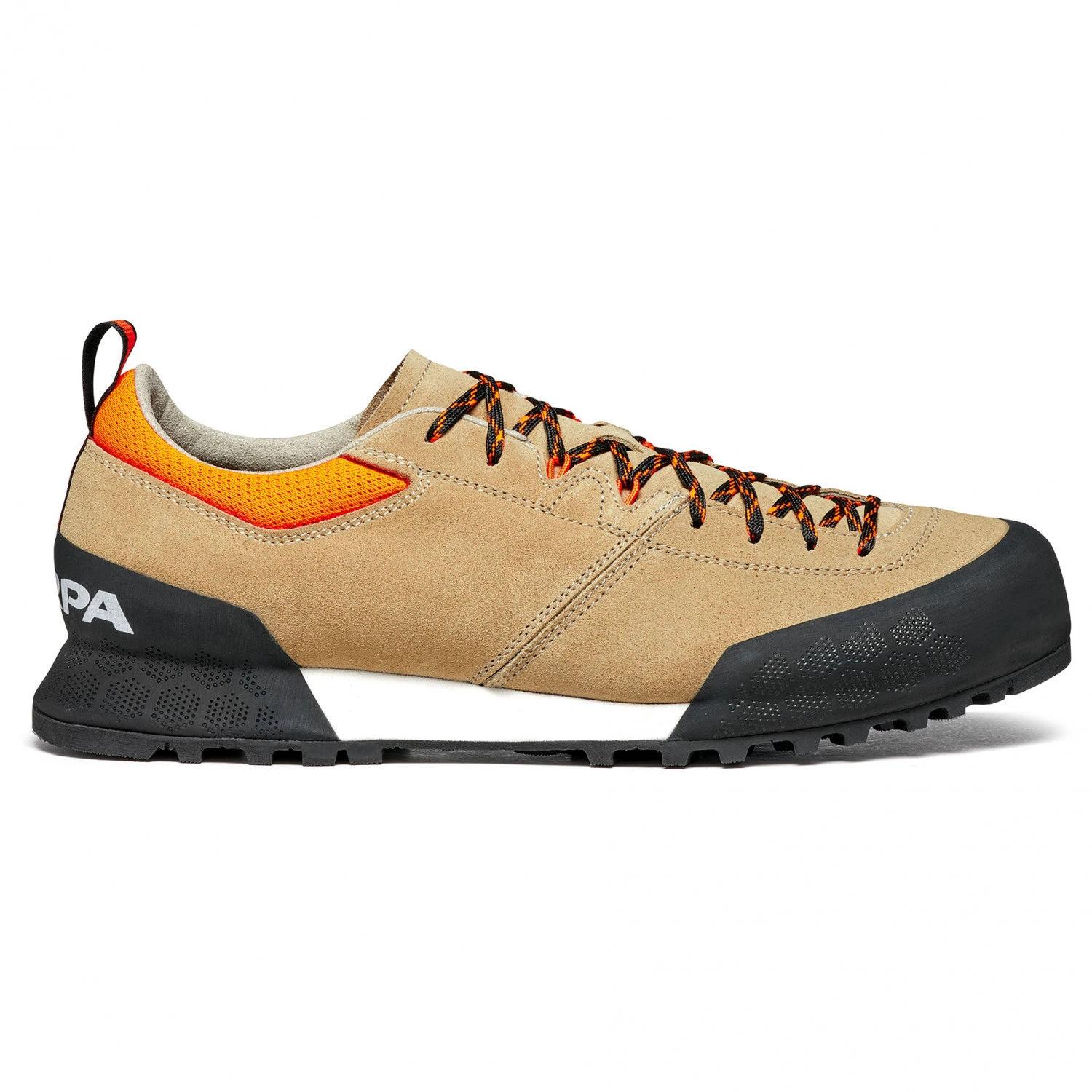 Bei leichten Kletterpassagen liefert die Climbing Zone im vorderen Bereich der Sohle eine gute Trittsicherheit und mehr Gefühl für den Untergrund. Die Laufsohle aus Gummi sorgt im Gelände für einen sicheren Halt. Eine flexible Schnürung und Anziehschlaufen erleichtern das Handling. Für leichte Klettersteige und Zustiege ist der Kalipè perfekt!